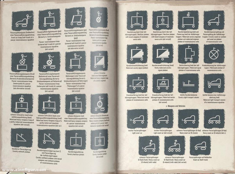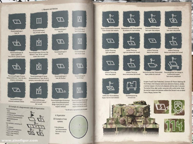 L’ouvrage recense plus de 1 000 marques tactiques appliquées aux véhicules de la Wehrmacht et utilisées sur les cartes tactiques ou topographiques -