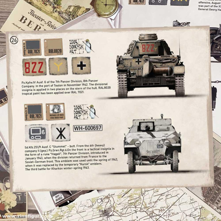 Profils de camouflage : Ce deuxième volume propose 180 profils, montrant les schémas de camouflage, les marques tactiques, ainsi que les panneaux routiers et numérotations utilisés par la Wehrmacht entre 1939 et 1945
