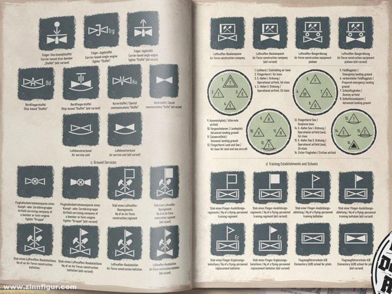 Le livre rassemble une collection riche de symboles utilisés par la Wehrmacht, la Luftwaffe et la Kriegsmarine durant la Seconde Guerre mondiale, incluant des signes de quartier général, de troupes de combat, de services, ainsi que des symboles spéciaux, obstacles, démolitions et symboles cartographiques -