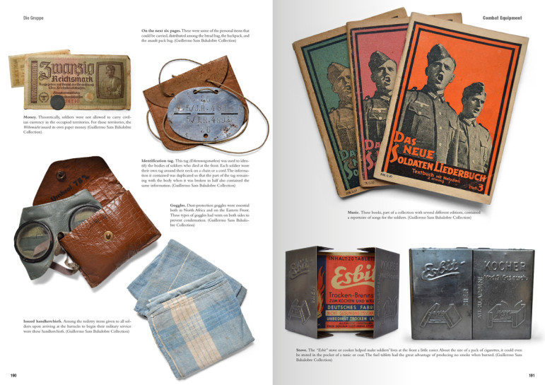 Die Gruppe est un ouvrage visuel et documentaire consacré à l’équipement, l’organisation et la vie quotidienne des soldats d’une escouade d’infanterie allemande pendant la Seconde Guerre mondiale, illustré de photos d’époque et d’objets authentiques.