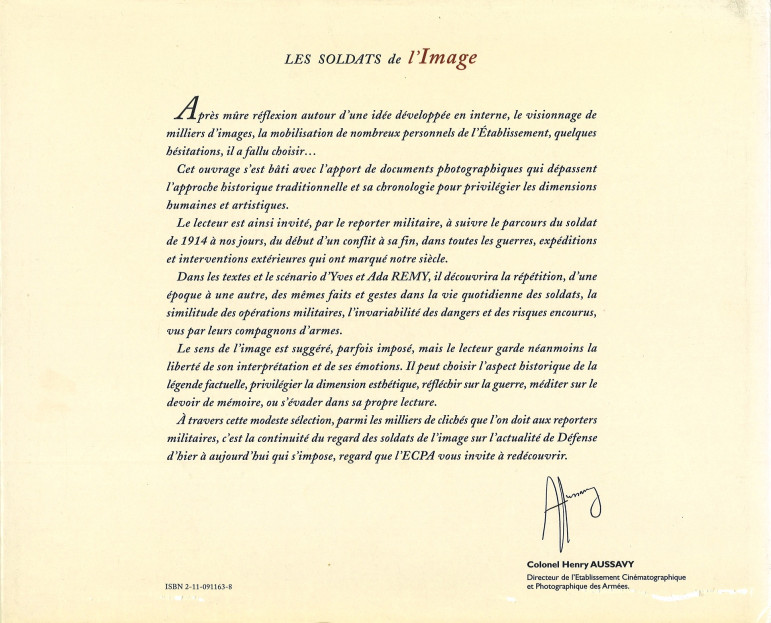 Ce livre présente une collection de documents photographiques qui retrace le parcours du soldat, de 1914 à nos jours, à travers les guerres et les interventions.