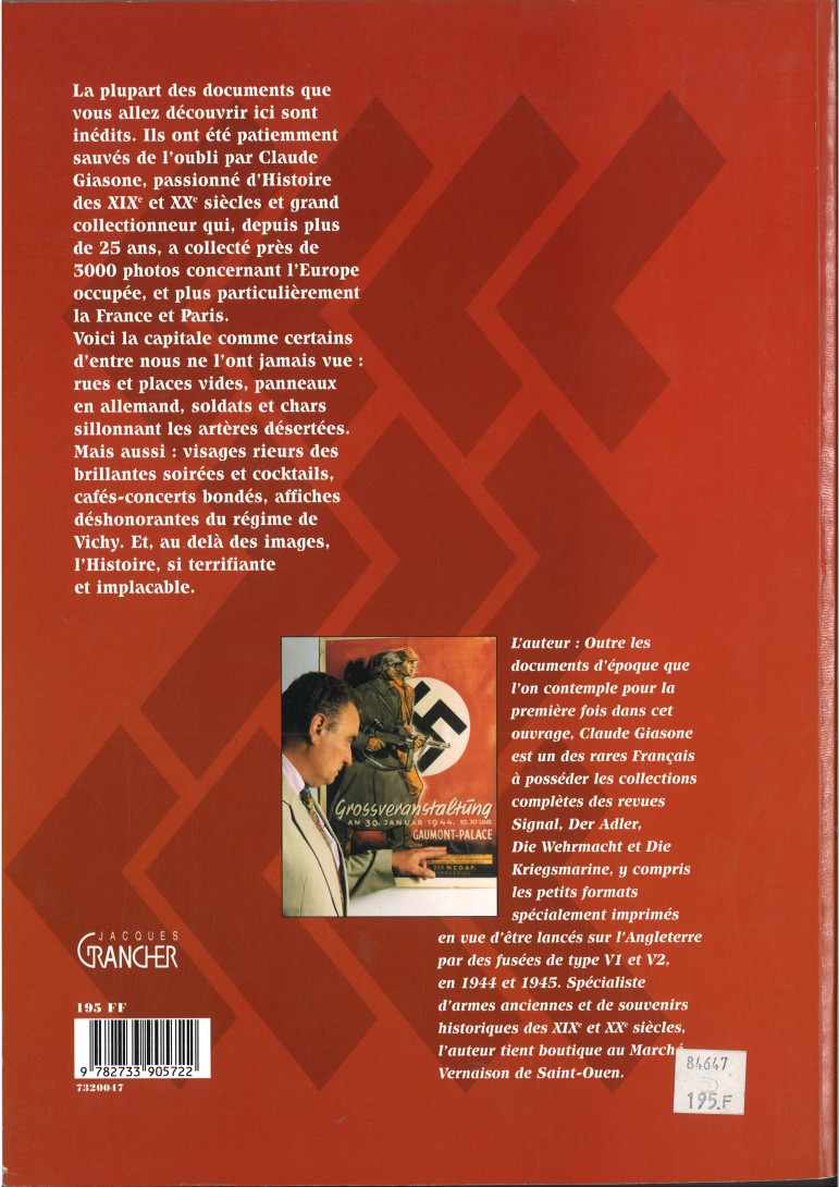 Paris occupé : 14 juin 1940 - 24 août 1944, est un ouvrage historique et documentaire qui couvre la période de l'Occupation allemande à Paris, de l'entrée des troupes allemandes en juin 1940 à la Libération en août 1944.