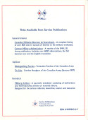 Formation Patches of the Canadian Army est une référence détaillée sur les écussons d'épaule portés par les soldats de l'Armée canadienne. Il retrace l'histoire, la conception, l'approbation et l'utilisation de ces insignes de formation, en s'appuyant sur des sources officielles et des photographies d'époque, et couvre la période du 20e siècle
