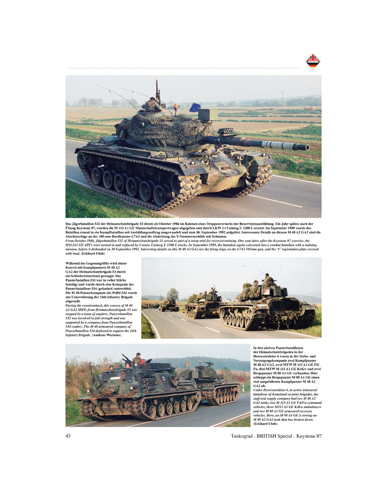 Cette publication présente, à travers d'impressionnantes photographies, les véhicules militaires britanniques et allemands participant à Keystone 87.