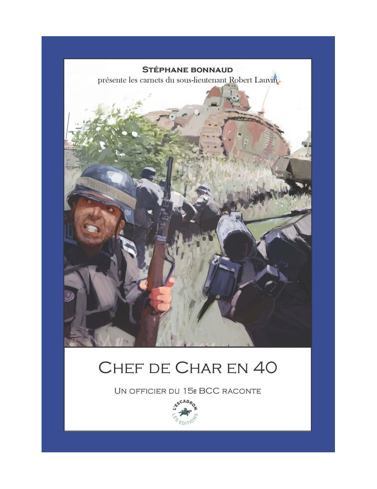 Stéphane Bonnaud présente les carnets d'un sous-lieutenant chef de char en 1940 : Robert Lauvin. Fort de son expertise, l'auteur présente l'unité du témoin, le 15e BCC et évoque son travail de recherches sur le bataillon. L'auteur a déjà rédigé le grand album illustré, chez Histoires & Collections : Chars B au combat. Par ce témoignage, Stéphane Bonnaud apporte une part d'humanité dans l'histoire presque trop mécanique de cette défaite.
