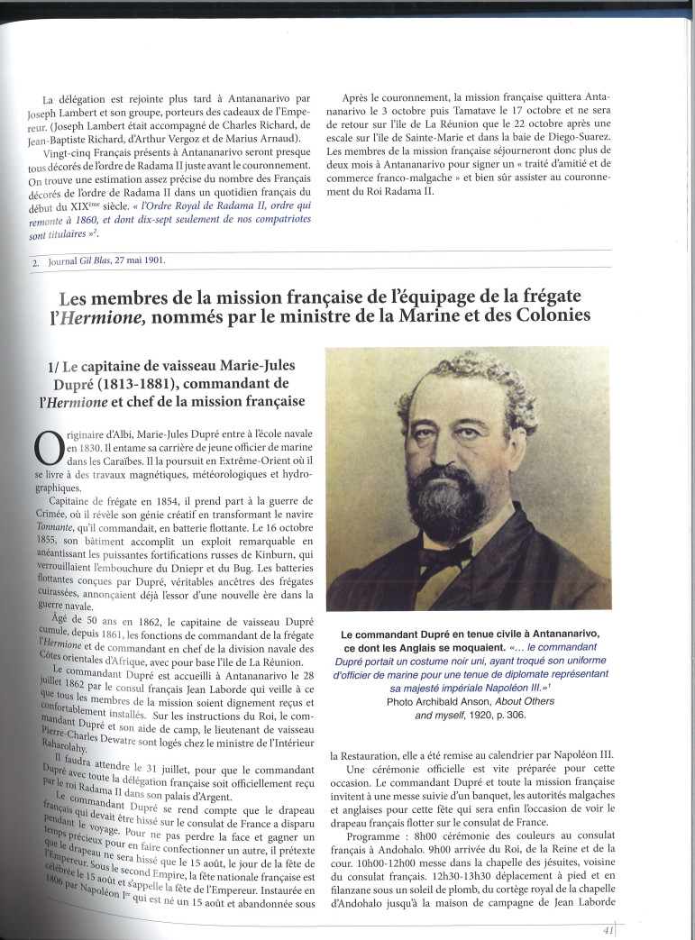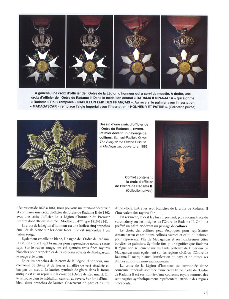 Vous y trouverez une description très précise des ordres, décorations et marques d'honneur du royaume de Madagascar sous les règnes de Radama I, Ranavalona I et Radama II.