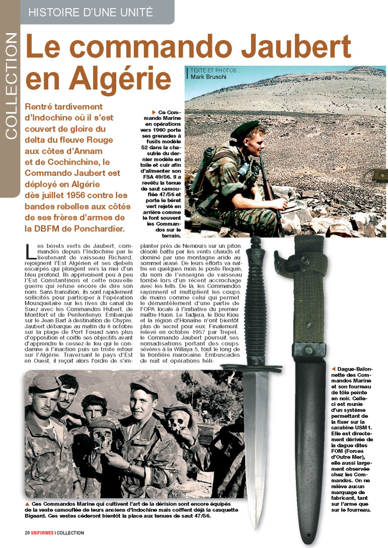 Rentré tardivement d’Indochine où il s’est couvert de gloire du delta du fleuve Rouge aux côtes d’Annam et de Cochinchine, le Commando Jaubert est déployé en Algérie dès juillet 1956 contre les bandes rebelles aux côtés de ses frères d’armes de la DBFM de Ponchardier.