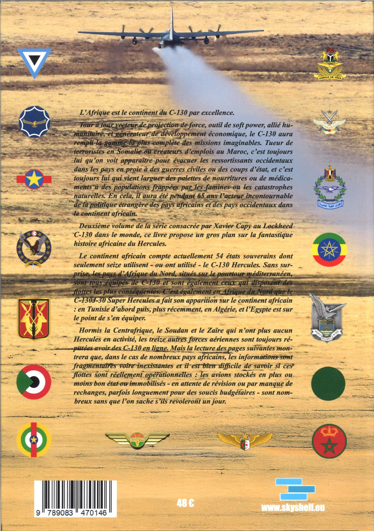Deuxième volume de la série consacrée par Xavier Capy au Lockheed C-130 dans le monde, ce livre propose un gros plan sur la fantastique histoire africaine du Hercules. Le continent africain compte actuellement 54 états souverains dont seulement seize utilisent - ou ont utilisé - le C-130 Hercules. Sans surprise, les pays d’Afrique du Nord, situés sur le pourtour méditerranéen, sont tous équipés de C-130 et sont également ceux qui disposent des flottes les plus conséquentes. C’est également en Afrique du Nord que le C-130J-30 Super Hercules a fait son apparition sur le continent africain : en Tunisie d’abord puis, plus récemment, en Algérie, et l’Égypte est sur le point de s’en équiper. Hormis la Centrafrique, le Soudan et le Zaïre qui n’ont plus aucun Hercules en activité, les treize autres forces aériennes sont toujours réputées avoir des C-130 en ligne.