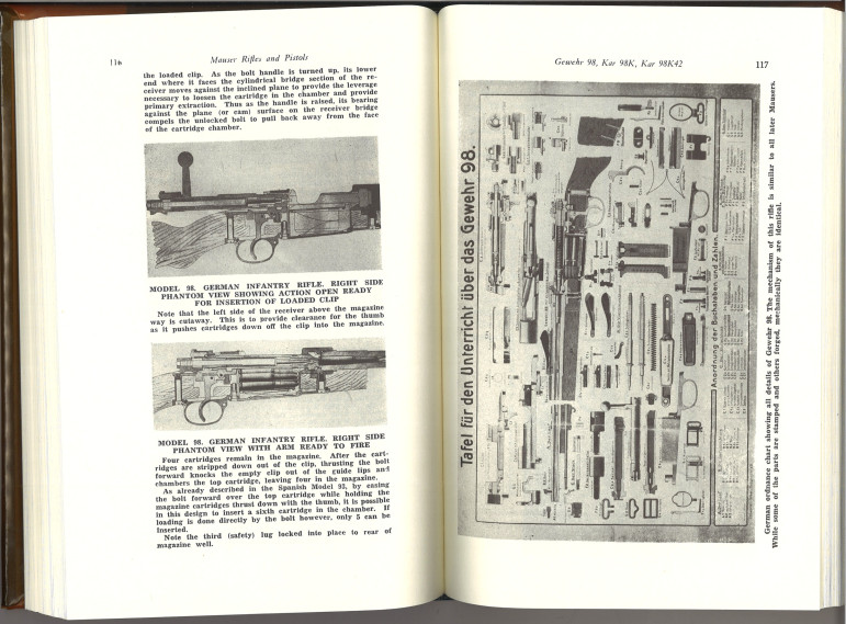 L’auteur analyse l’évolution technique des principaux systèmes Mauser, en mettant l’accent sur leur fonctionnement mécanique, leurs différences de fabrication, leurs variantes nationales et leur emploi militaire. Les pages illustrées montrent notamment des schémas de coupe, vues mécaniques, planches de pièces détachées et explications de fonctionnement, ce qui en fait un ouvrage particulièrement utile pour comprendre l’architecture interne de ces armes.