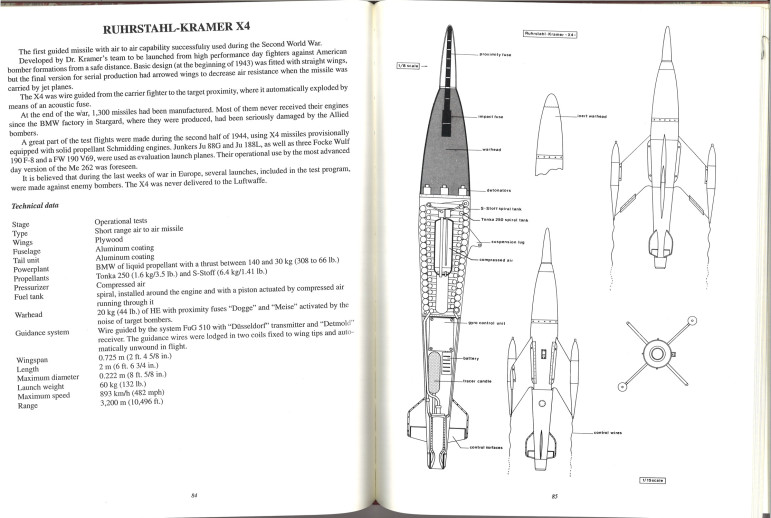 La double page présentée met en avant le missile air-air X4, l’un des projets les plus innovants de la fin de guerre :