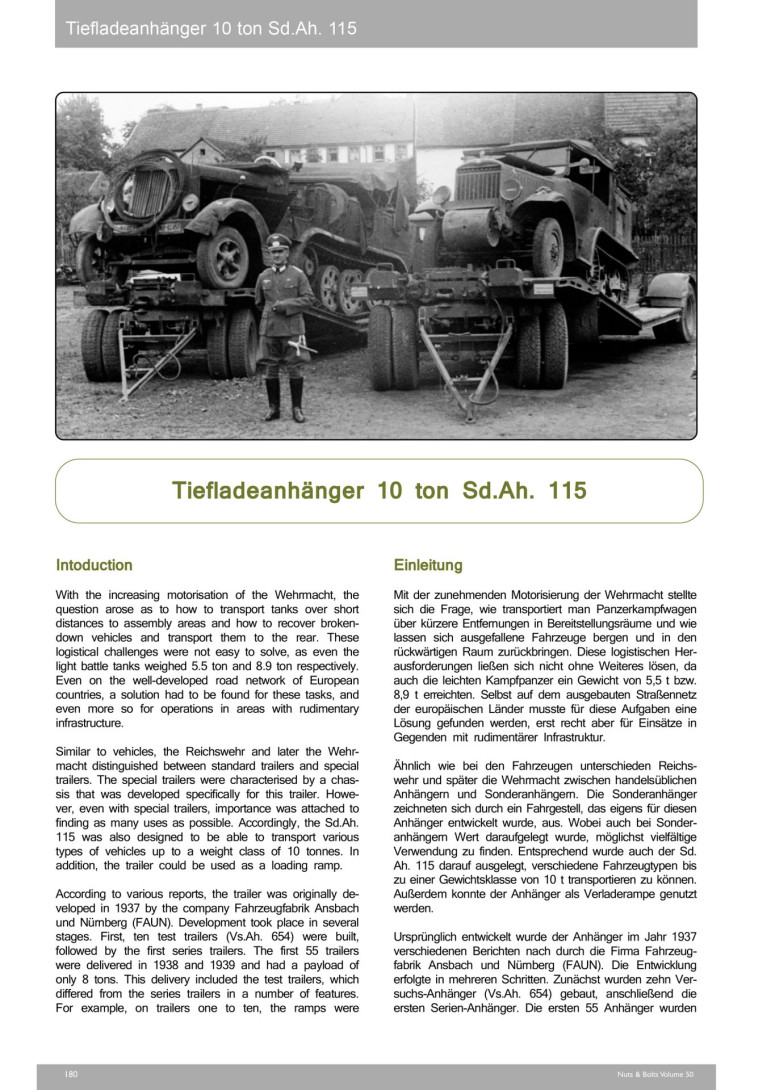 Cependant, nous ne voulions pas simplement publier une réimpression : nous avons d’abord mis à jour le contenu du volume 34, puis nous y avons ajouté le canon lourd de 10 cm schwere Kanone 18 ainsi que la remorque spéciale de 10 tonnes Sonderanhänger 115, deux charges tractées typiques du Sd.Kfz. 7.