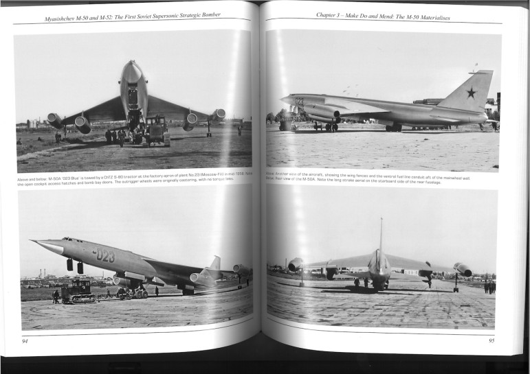 Renaître en 1951, le bureau d'études Myasishchev s'illustra avec le bombardier stratégique M-4. Cependant, cet appareil subsonique fut rapidement rendu obsolète par la technologie des chasseurs supersoniques : tout nouveau bombardier stratégique se devait d'être supersonique pour éviter d'être intercepté. C'est pourquoi, en 1952, Myasishchev entreprit des travaux sur des bombardiers supersoniques, aboutissant au M-50 de 1955. Conçu pour le vol de croisière supersonique soutenu, ce bombardier quadriréacteur Mach 1,7 présentait de nombreuses innovations, notamment des systèmes de pilotage automatique et de compensation de tangage, ainsi que le réacteur le plus puissant de l'époque. L'armée de l'air ayant rejeté le M-50 en raison de son autonomie insuffisante, Myasishchev suggéra de le construire comme démonstrateur technologique pour le M-52, avion d'attaque lance-missiles nettement amélioré. Le M-50 effectua son premier vol en octobre 1959, mais ne réalisa que 11 vols avant la fermeture du bureau d'études Myasishchev un an plus tard. Il connut néanmoins son heure de gloire lors du meeting aérien de Tushino le 9 juillet 1961. Cet ouvrage est le seul consacré à ces avions en anglais et présente environ 400 images inédites ou rarement vues.