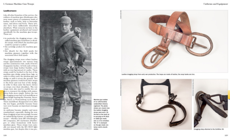 Deux chapitre sont consacrés aux uniformes, insignes et équipements des mitrailleurs ainsi que les accessoires des MG : supports, caisses à munitions, optiques, accessoires d'entretien et pièces de rechange.