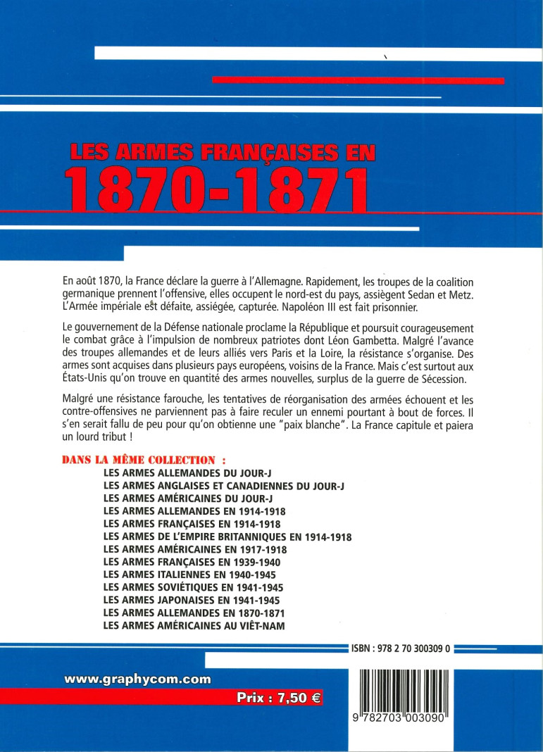 Découvrez Les Armes Françaises en 1870-1871 par Jean Huon. Cet ouvrage illustré de 48 pages explore les armes utilisées par la France durant la guerre franco-prussienne. Un incontournable pour les passionnés d'histoire militaire. Réf. 01AFR022. ISBN : 9782703003090.