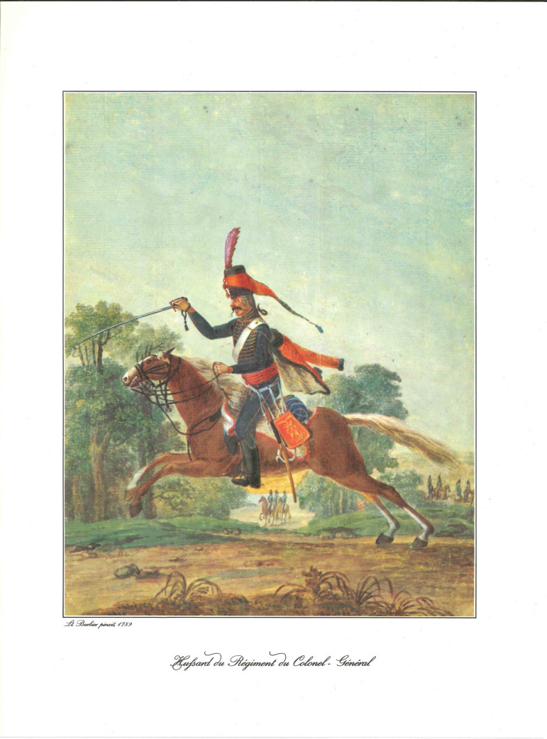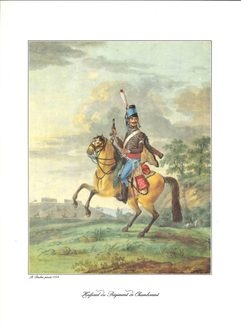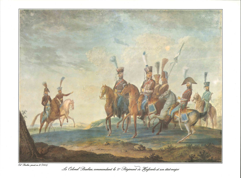 Magnifiques reproductions des gouaches du général baron Barbier peintes en 1789 comme lieutenant en premier au Régiment de Hussards de Chamborand et en 1803 comme colonel commandant le 2e Régiment de Hussards.