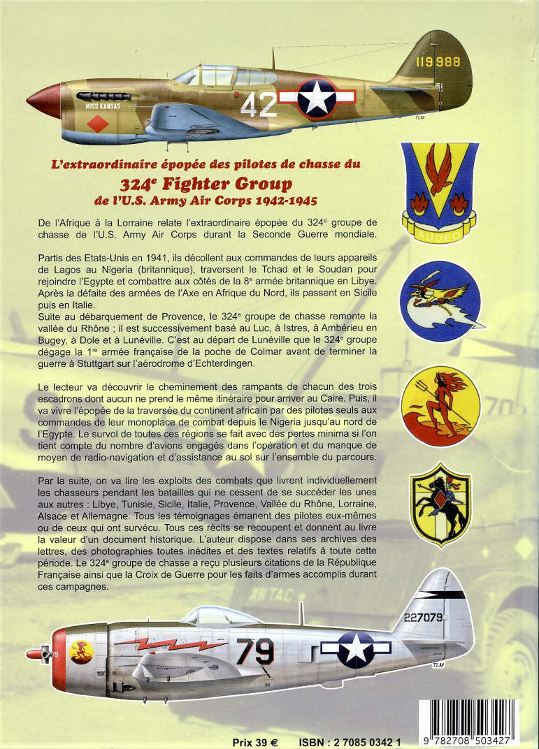 Par la suite, on va lire les exploits des combats que livrent individuellement les chasseurs pendant les batailles qui ne cessent de se succéder les unes aux autres : Libye, Tunisie, Sicile, Italie, Provence, Vallée du Rhône, Lorraine, Alsace et Allemagne. Tous les témoignages émanent des pilotes eux-mêmes ou de ceux qui ont survécu. Tous ces récits se recoupent et donnent au livre la valeur d'un document historique. L'auteur dispose dans ses archives des lettres, des photographies toutes inédites et des textes relatifs à toute cette période. Le 324e groupe de chasse a reçu plusieurs citations de la République Française ainsi que la Croix de Guerre pour les faits d'armes accomplis durant ces campagnes.