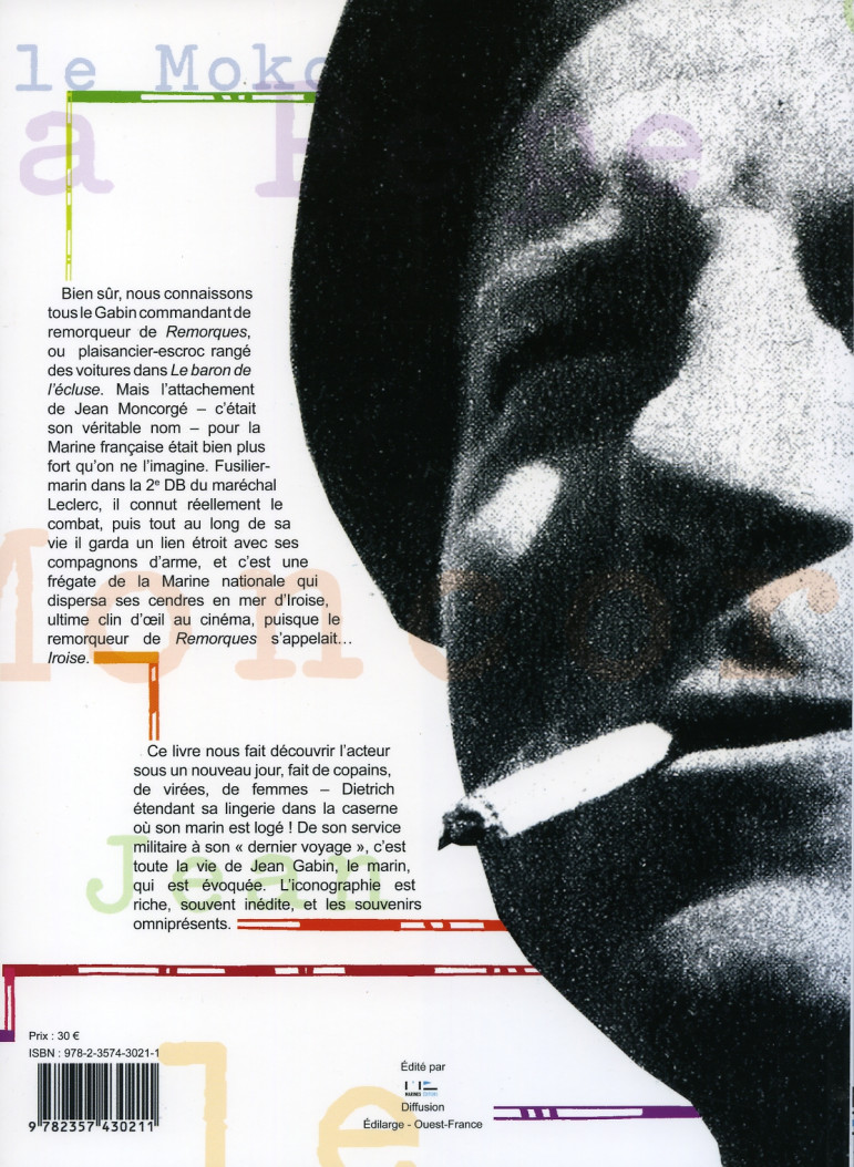 Bien sûr, nous connaissons tous le Gabin commandant de remorqueur de Remorques, ou plaisancier-escroc rangé des voitures dans Le baron de l'écluse. Mais l'attachement de Jean Moncorgé - c'était son véritable nom - pour la Marine française était bien plus fort qu'on ne l'imagine. Fusilier-marin dans la 2e DB du maréchal Leclerc, il connut réellement le combat, puis tout au long de sa vie il garda un lien étroit avec ses compagnons d'arme, et c'est une frégate de la Marine nationale qui dispersa ses cendres en mer d'Iroise, ultime clin d'œil au cinéma, puisque le remorqueur de Remorques s'appelait... Iroise.
