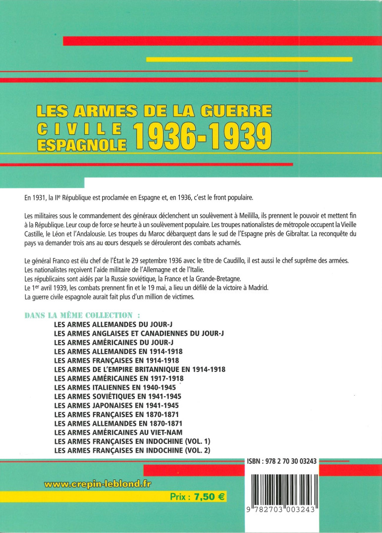 Ce fascicule se distingue par ses illustrations riches et détaillées. Vous y trouverez des photos d'époque ainsi que des images en couleur et en gros plan des différentes armes utilisées pendant la guerre civile espagnole. Chaque illustration est accompagnée de caractéristiques techniques précises, offrant un aperçu complet des spécificités de chaque arme. Que vous soyez collectionneur, historien ou simplement curieux, les visuels de ce livre vous permettront de mieux comprendre les technologies militaires de l'époque. ISBN : 9782703003243.
