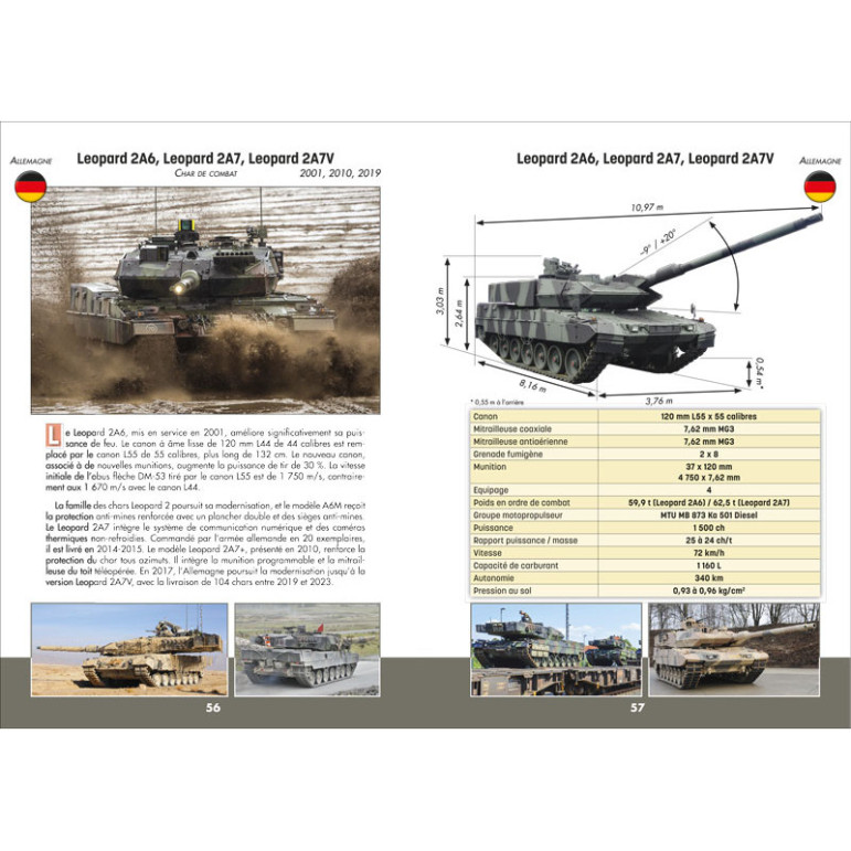 Cet ouvrage regroupe les chars modernes du monde entier et leurs nombreuses modifications et modernisations, avec un tableau chronologique de leur mise en service. Il fait suite à la première édition sortie en 2009 et inclut tous les chars de combat développés durant la dernière décennie.