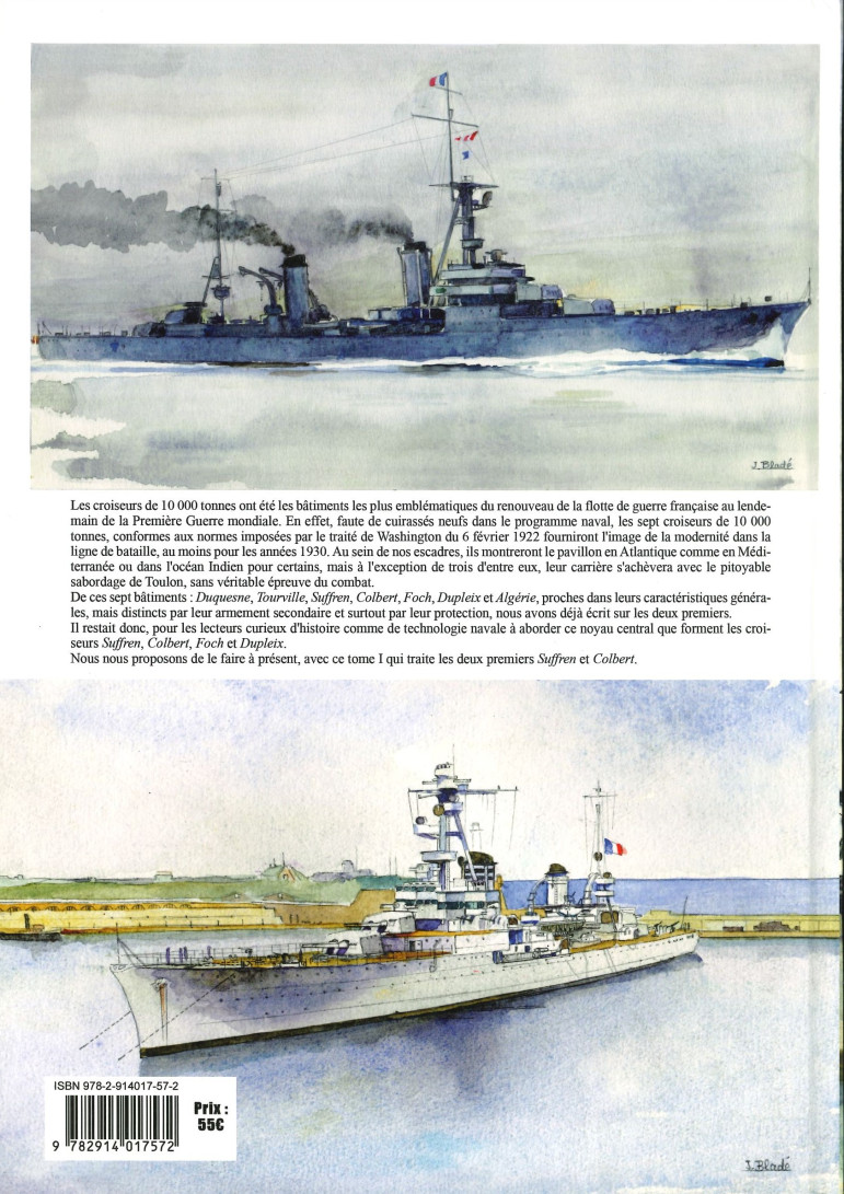 Il restait donc, pour les lecteurs curieux d'histoire comme de technologie navale à aborder ce noyau central que forment les croiseurs Suffren, Colbert, Foch et Dupleix. Nous nous proposons de le faire à présent, avec ce tome I qui traite les deux premiers Suffren et Colbert.